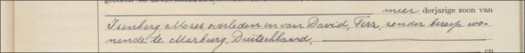 Ik vond de naam terug in de huwelijksakte van Siegfried en Henny. De moeder van de bruidegom heet er Terz David gehuwd met Mozes Isenberg. Van haar is bekend dat ze op 7 september 1942 in Theresienstadt geïnterneerd is waar ze op 28 maart 1943 zou sterven.
