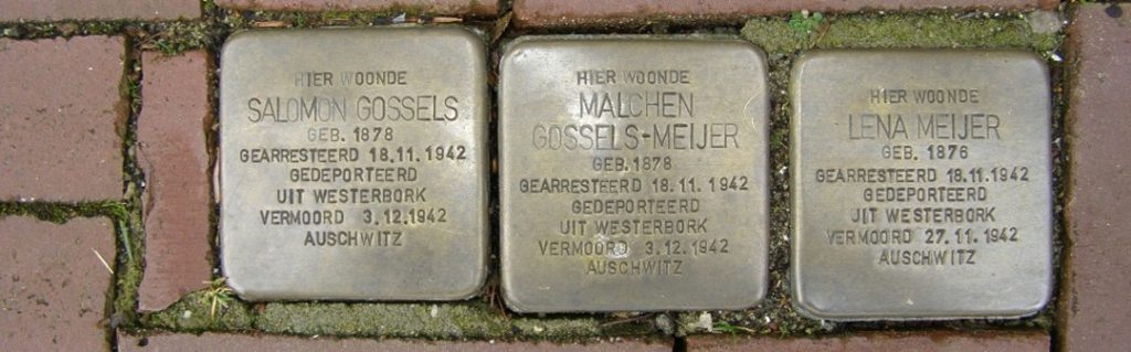 Sally Gossels was opgegroeid in Oldenzaal waar hij net als zijn vader het slagersvak was ingegaan. Sally trouwde met de Bentheimse Malchen Meijer. Daar in Bentheim kregen ze twee kinderen. Sally en Malchen vonden samen met Lena, een zuster van Malchen, vanaf 1938 onderdak in het ruime en gastvrije huis van de Joodse voorzanger Louis Meijer aan het Muraltplein. Bij de razzia van 18 november 1942 werd het drietal opgepakt. Kort daarna vonden zij in de gaskamers van Auschwitz de dood. We hebben drie Stolpersteine voor hen gelegd in het plaveisel voor het huis van de Joodse voorzanger Louis Meijer.